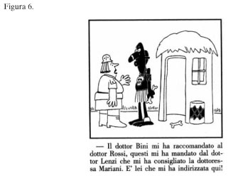 Dettagli Luglio-Dicembre 2010, Vol. 33, N. 2 doi 10.1712/598.6990 Scarica il PDF(254,1 kb) Citazione Benini1 C. Quando le parole non bastano: la vignetta umoristica nella terapia relazionale. . doi 10.1712/598.6990 Scarica la citazione: BibTex EndNote Ris Altro dagli autori Articoli di Chiara Benini1 Quando le parole non bastano: la vignetta umoristica nella terapia relazionale titolo - split_articolo,controlla_titolo - art_titolo Quando le parole non bastano: la vignetta umoristica nella terapia relazionale autori - vau_aut_id Chiara Benini1 testo - art_testo «Scherzando, si può dire di tutto, anche la verità» S. Freud, Il motto di spirito e la sua relazione con l’inconscio riassunto - art_riassunto Riassunto. Il lavoro propone una teoria e un’esperienza di utilizzo delle vignette umoristiche nel contesto clinico. Prendendo avvio da alcune considerazioni sull’uso terapeutico della battuta umoristica e sui vantaggi della comunicazione per immagini, vengono proposte alcune vignette riassumendo gli aspetti salienti dei casi in cui sono state impiegate. Il lavoro si conclude con alcune riflessioni sull’impiego di questo strumento in psicoterapia. parolechiave - lingua - vke_key_id Parole chiave. Psicoterapia, umorismo, vignette. abstract - art_abstract Summary. When words are not enough: the cartoon in relational therapy. The work proposes a theory and an experience of use of humorous cartoons in the clinical setting. Taking start from some considerations on the therapeutic use of funny cartoons and on the advantages of the communication for images, some cartoons are proposed summarizing the salient aspects of the cases in which they have been employed. The work ends with some reflections on the use of this tool in psychotherapy. keyword - lingua - vke_key_id Keywords. Psychotherapy, humor, cartoons. resumen - ignora Resumen. Cuando las palabras no son suficientes. La viñeta humorística en la terapia relacional. El trabajo propone una teoría y una experiencia de uso de los dibujos animados en el ámbito clínico. Partiendo de algunas consideraciones sobre el uso terapéutico del golpe humorístico y sobre las ventajas de la comunicación para imágenes, son propuestas algunas viñetas resumiendo los aspectos salientes de los casos en los cuales han sido empleadas. El trabajo se concluye con algunas reflexiones sobre el empleo de este instrumento en psicoterapia. testo - art_testo introduzione Proporre il tema dell’umorismo mette sovente in difficoltà perché sorge la tentazione di farlo, come in una matrioska, in modo umoristico, di dare un saggio di ciò di cui si parla già nel parlarne. Per mia fortuna il tema di questo lavoro mi esime da questo problema, grazie alla specificità del mezzo immagine e al suo distinguersi da motti e battute. Vorrei però sgombrare il campo dall’idea di un approfondito studio che preceda lo strumento terapeutico proposto. In realtà questo articolo costituisce una riflessione che definirei “a posteriori” su uno strumento nato quasi per caso e per gioco e utilizzato poi frequentemente e con grande serietà nel corso delle terapie. LO “SPIRITO” E LE PSICO COSE Breve storia del rapporto tra psicologia e umorismo La discreta mole di pubblicazioni, edite soprattutto negli ultimi decenni, sul tema “psicologia-umorismo” dà conto della vivacità del dibattito su questo argomento, trattato a partire da varie prospettive e con diverse finalità. Senza voler essere esaustiva, cercherò di evidenziare alcuni elementi di questo grande quadro utili alla presente trattazione. Il tema dell’umorismo e dei suoi usi e significati psicologici ha origini lontane: già filosofi quali Aristotele, Platone o Cicerone ne fecero oggetto delle loro riflessioni. Volendo indicare un punto di partenza più vicino alla contemporaneità la mente di ogni psicologo corre rapidamente a Freud e al suo saggio sul Witz, il motto di spirito. La trattazione, che si dipana tra una storiella e l’altra cercando di afferrare l’essenza di questa sfuggente creatura, giunge ad evidenziare come, attraverso la forte penetrazione nel livello inconscio, il motto di spirito permetta il superamento delle barriere della critica, arrecando sollievo e procurando vantaggio in termini di dispendio di energie psichiche [1]. Ai fini della presente trattazione, questo aspetto assume particolare rilievo poiché il superamento del livello critico-razionale è un elemento importante del valore aggiunto che l’umorismo porta quando è usato in un contesto terapeutico. In altri termini l’umorismo è un «mezzo per ridurre le pretese della mente e raggiungere il livello emotivo ottimale» [2] facilitando l’apprendimento, la memoria e la guarigione. Un altro punto di riferimento storico è il seminario che Bateson tenne nel ’52 presso la Macy Foundation, recentemente pubblicato. In questa occasione l’umorismo fu per Bateson uno spunto per parlare più in generale della sua teoria sulla comunicazione, da cui emergono intuizioni tutt’altro che trascurabili ai fini clinici, come l’idea che l’umorismo per funzionare abbia bisogno che gli attori coinvolti abbiano simili premesse di fondo e visioni condivise sulla vita. Spesso si incontrano terapeuti e pazienti con storie e premesse alquanto differenti, ma la necessità di assumere anche provvisoriamente un po’ della visione dei propri pazienti sulla vita è indispensabile per la costruzione di un rapporto efficace; di quella visione un terapeuta sistemico non può infatti che tener conto nello scegliere e nell’applicare i propri strumenti. Un’altra fondamentale osservazione, emersa in quello che fu uno degli ultimi seminari newyorkesi della Fondazione, riguarda il carattere convenzionalmente condiviso di “non pericolosità” dello humour: «l’umorismo è un modo giocoso per cambiare identificazione senza rischi di conseguenze» [3]. Forse proprio per questo «l’umorismo è uno dei pochi “stati” in cui possiamo